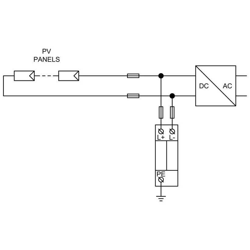 Установите на стороне постоянного тока фотоэлектрических систем либо без внешней системы молнии (LPS), либо с LPS, когда сохраняется необходимое расстояние расстояния разделения. Это поддерживает безопасную интеграцию как в новых сборках и модернизации.
