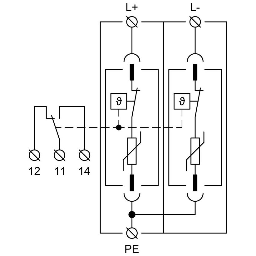 Внутренние тепловые отключения на варисторных путях (L+, L-, PE)